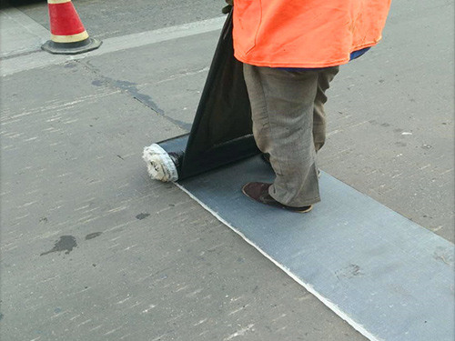 該產品具有自粘性,施工很方便,揭去隔離膜后直接粘結到裂縫部位,采用小型壓實設備穩壓后,與路面粘結更加牢固,無推移,能夠滿足上層瀝青混合料攤鋪施工要求。